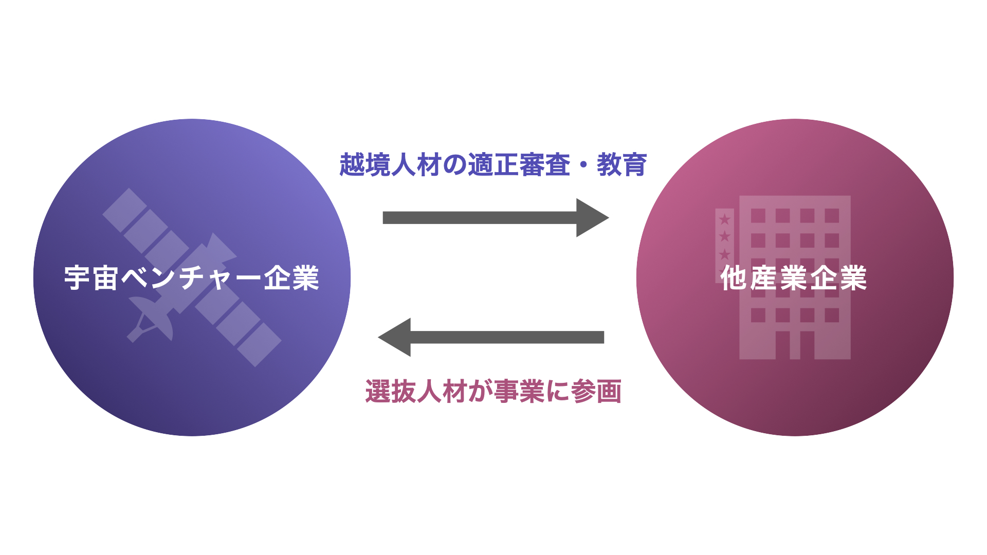 宇宙留学とは、他産業企業の社員が一定期間、宇宙ベンチャー企業の一員として参加する出向型研修制度です。